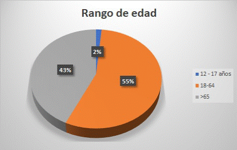 Figura 2: Distribución por edad de pacientes con enfermedad renal crónica en Ambato, Ecuador, entre 2017 y 2019
