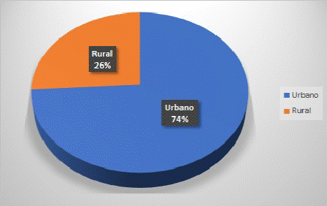 Entre el 2017 y 2019 se atendieron 3.007 pacientes con diagnóstico de ERC (862 en 2017, 956 en 2018 y 1.189 en 2019). La distribución entre mujeres y hombres fue de 55 % vs. 45 % para 2017, 47 % vs. 53 % para 2018 y 52 % vs. 48 % para 2019 Figura (1), y en todo el periodo de estudio, el 55 % tenía más de 65 años, el 43 % tenía entre 18 y 64 años y el 2 % eran menores de 18 años Figura (2); además, el 74 % residía en el área urbana y el 26 %, en el área rural Figura (3). La clasificación de ERC según los estadios se muestra en la Figura 4.