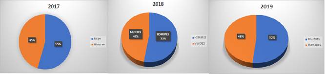 Figura 1: Distribución por género de pacientes con enfermedad renal crónica en Ambato, Ecuador, entre 2017 y 2019